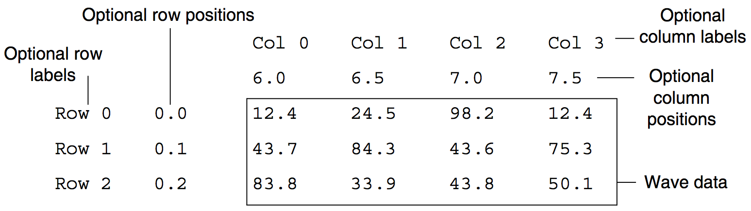 | Can load columns into 1D waves or blocks into 2D waves. | |
