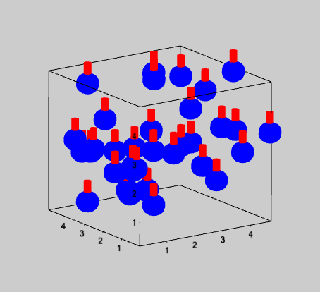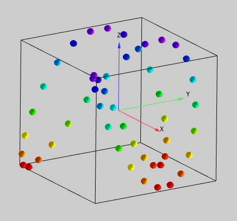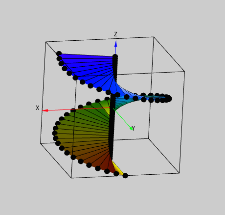 Spheres representing the XYZ data appear in the Gizmo0 window. Although the plot is by no means complete, you can click and drag the body of the Gizmo0 window to rotate the display.