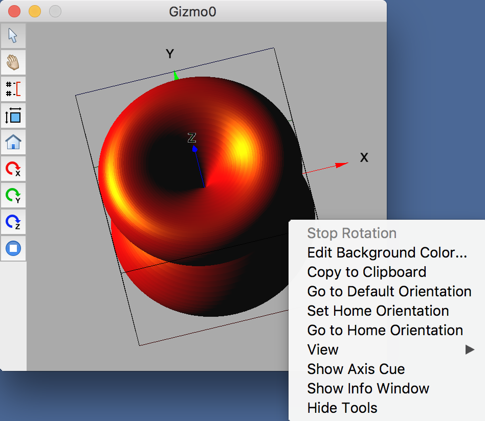 Gizmo is based on OpenGL, an industry standard system for 3D graphics. Gizmo converts Igor data and commands into OpenGL data and instructions and displays the result in an Igor window called a "Gizmo window".