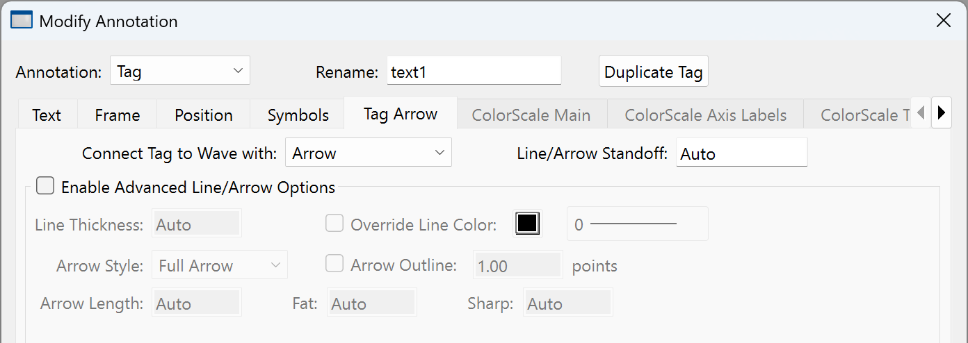 | To change a tag's attachment point, press Alt and drag the tag text to the new attachment point on the wave. This works whether or not the tag is frozen. | |
