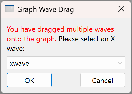 If you want to plot the data values of the Y waves versus the data values of another wave, select the other wave in the X Wave list. This is an XY plotting trace. In this case, X scaling is ignored; see The XY Model of Data.