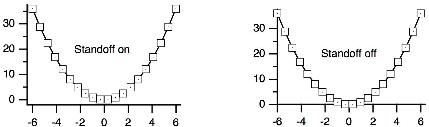 Axes created this way are called "free axes" because they can be freely positioned nearly anywhere in the graph window. The standard left, bottom, right, and top axes always remain at the edge of the plot area.