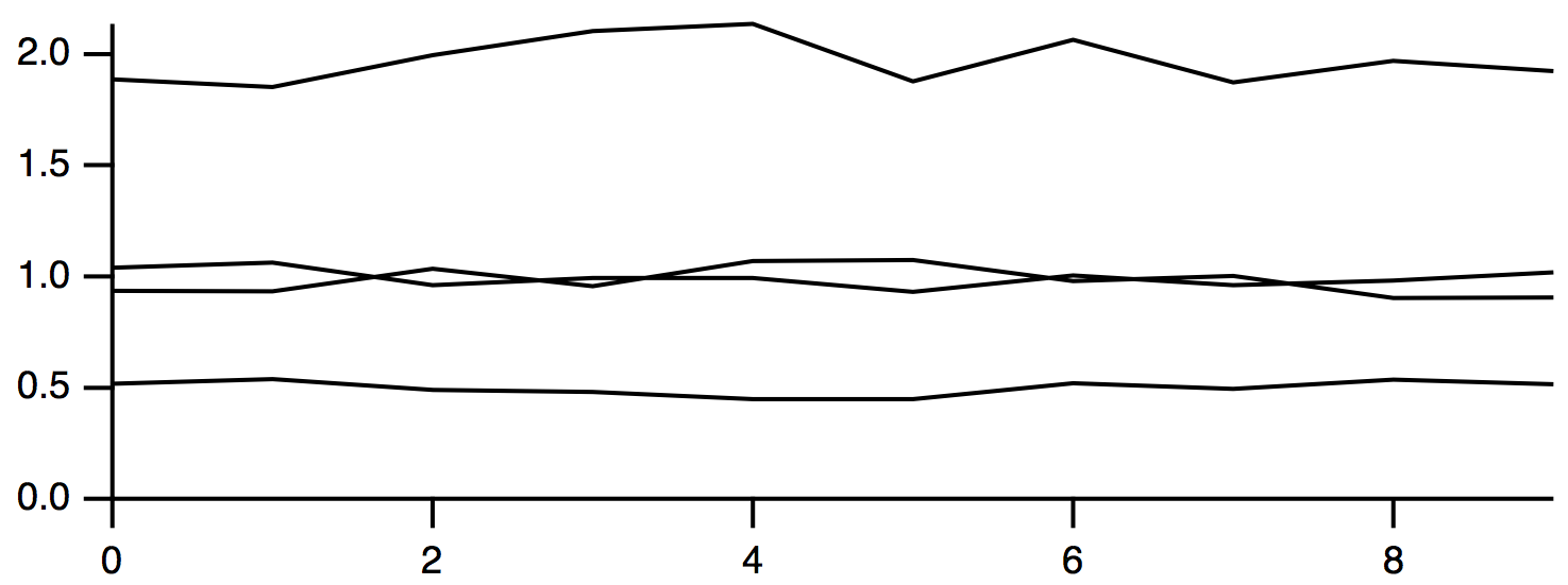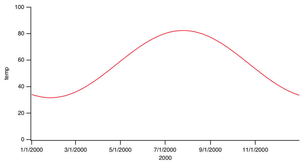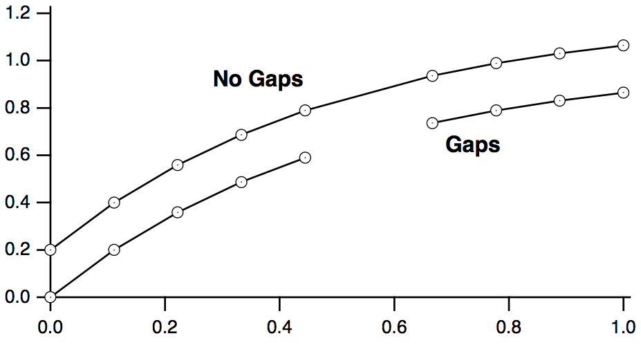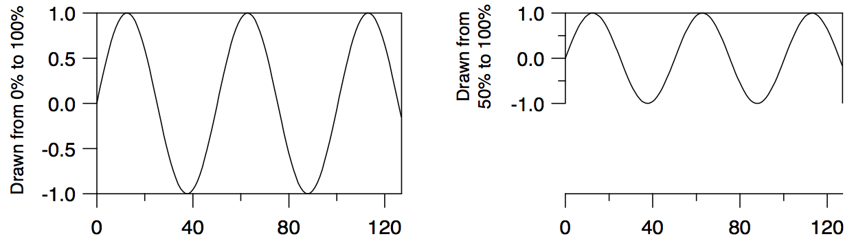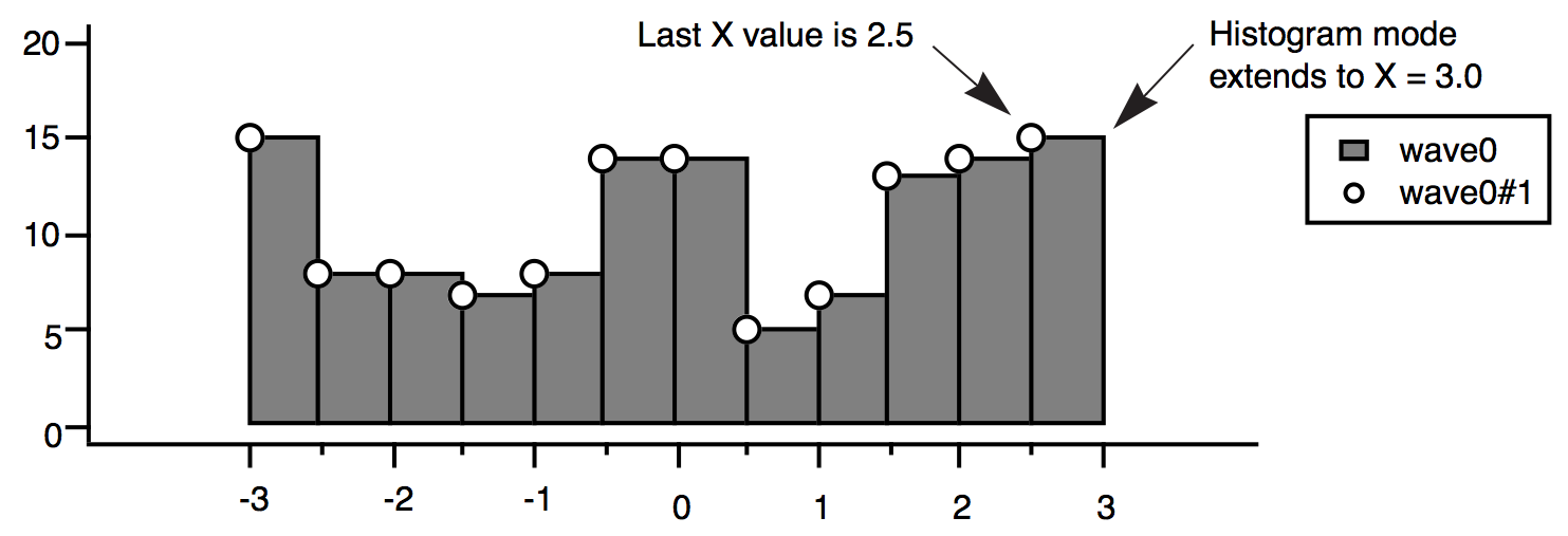 Often the data values of the waves that you select in the Y Waves list are plotted versus their calculated X values. This is a waveform trace. The calculated X values are derived from the wave's X scaling; see The Waveform Model of Data.