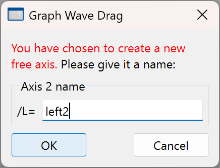 You can also add unlimited numbers of additional user-named axes termed free axes. Free axes are so named because you can position them nearly anywhere within the graph window. In particular, vertical free axes can be positioned anywhere in the horizontal dimension while horizontal axes can be positioned anywhere in the vertical dimension.