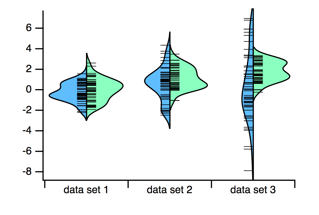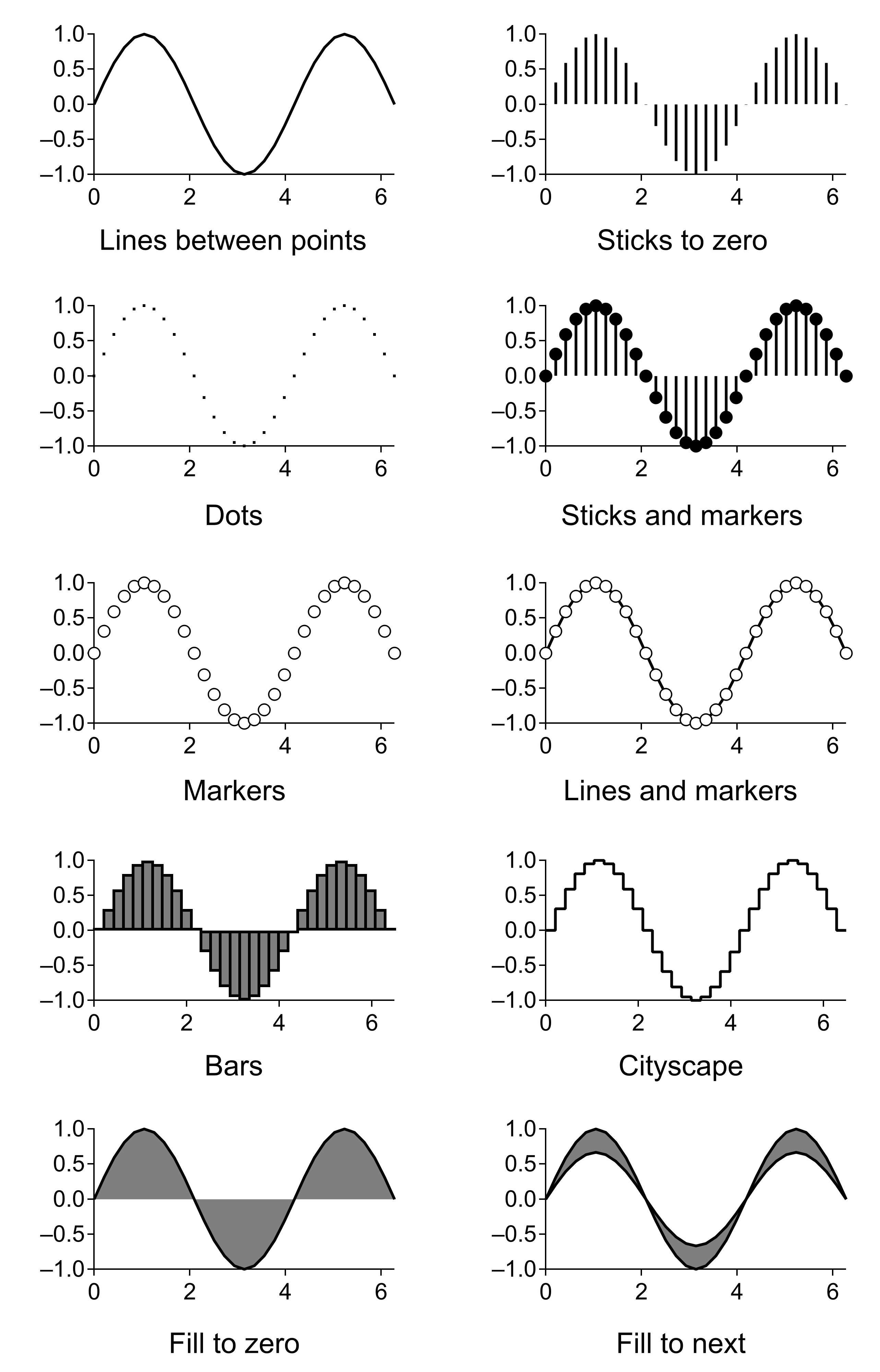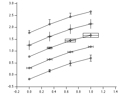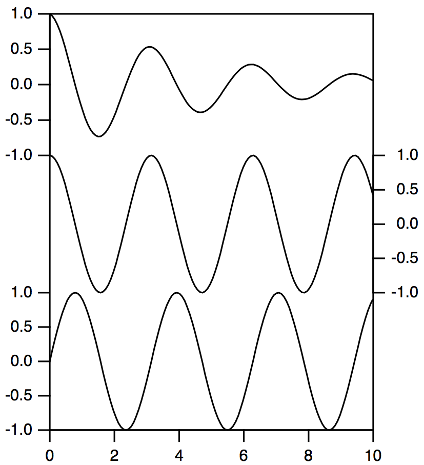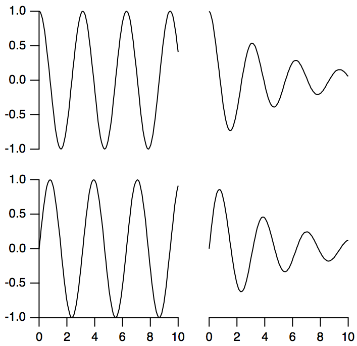 The various kinds of plots can be overlaid in the same plot area or displayed in separate regions of the graph. Igor also provides extensive control over stylistic factors such as font, color, line thickness, dash pattern, etc.