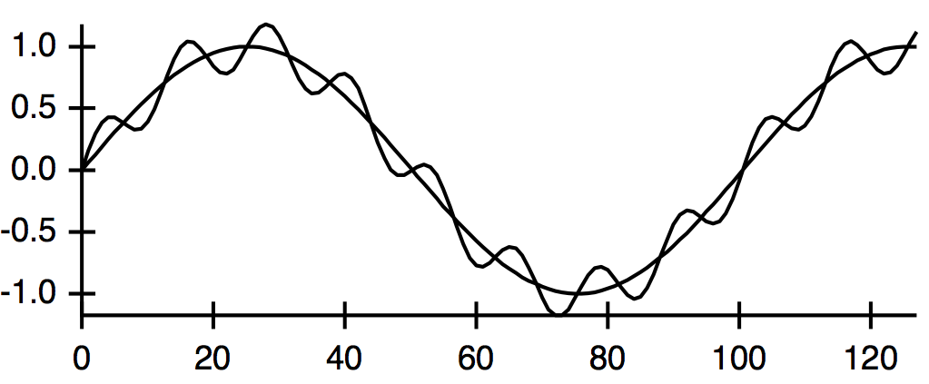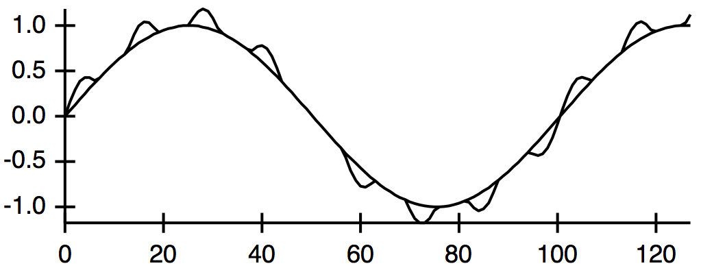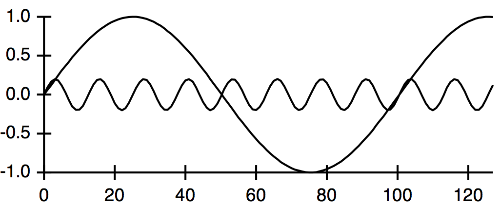 Make/O wave0=sin(x/8), wave1=cos(x/8), wave2=wave0*wave1, xwave=x/8 -