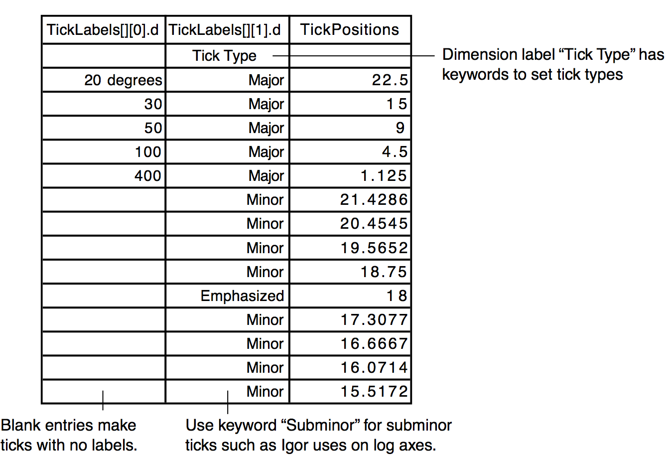 Igor graphs are dynamic. When you zoom in on a detail in your data, or when your data changes, perhaps due to data transformation operations, Igor will automatically adjust both the tick mark labels and the axis labels. For example, before zooming in, an axis might be labeled in milli-Hertz and after in micro-Hertz. No matter what the axis range you select, Igor always maintains intelligent tick mark and axis labels.