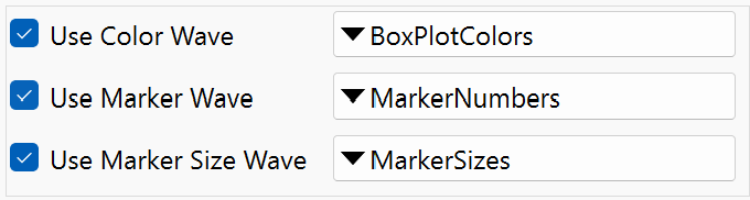 | Category plots | Numeric wave data versus text wave data | |