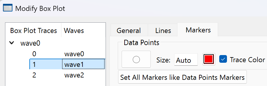 The "XY Plots:Wave Styles" preference category refers to the various wave-specific settings in the graph, such as the line type, markers and line size, set with the Modify Trace Appearance dialog. This category also includes settings for waveform plots. Each captured wave style is associated with the index of the wave it was captured from. The index of the first wave displayed or appended to a graph is 0, the second appended wave has an index of 1, and so on.These indices are the same as are used in style macros. See Graph Style Macros.