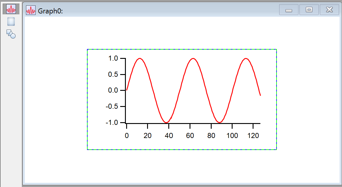 Click the second icon in the tool palette to enter guides mode, as indicated by the rectangles with handles on each edge of the subgraph, and the appearance of the lines indicating the guides. So far, only the built-in guides are present: green inside the active subwindow and purple in the active subwindow's host, which in this case is the main window:
