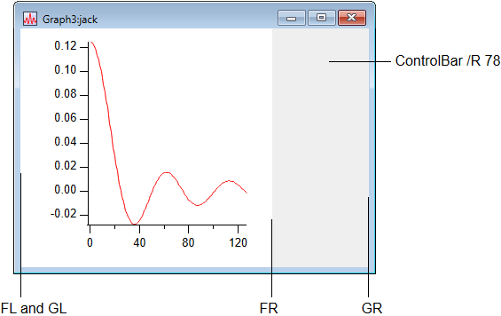 All host windows have built-in guides named FL, FT, FR and FB for Frame Left, Frame Top, Frame Right and Frame Bottom. Graphs also have the corresponding PL, PR, PT and PB for the interior plot area. In addition, base graphs have built-in guides: GL, GR, GT and GB for the graph area.