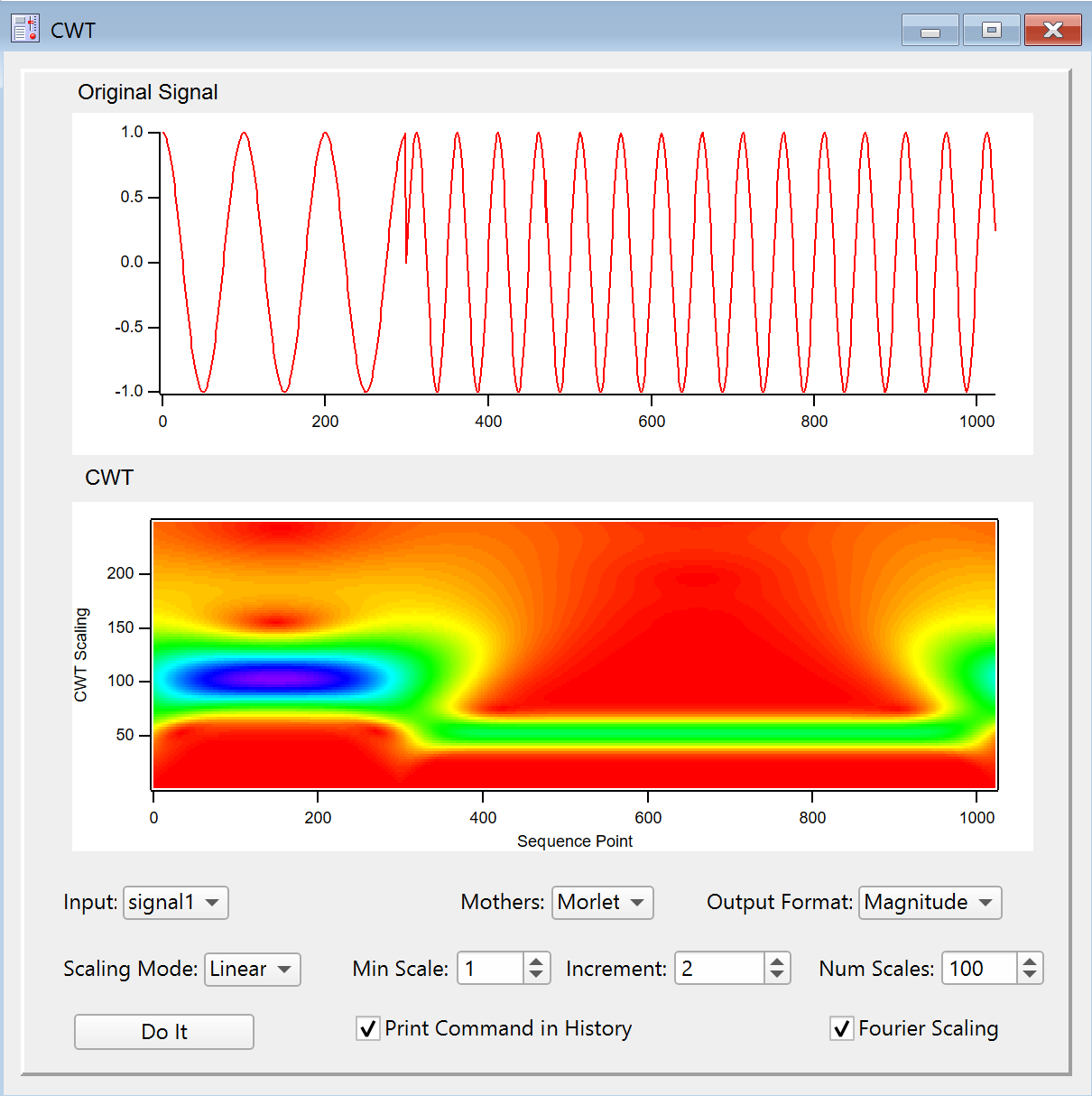 This example is derived from the CWT demo experiment which you can find in the Analysis section of your Examples folder.