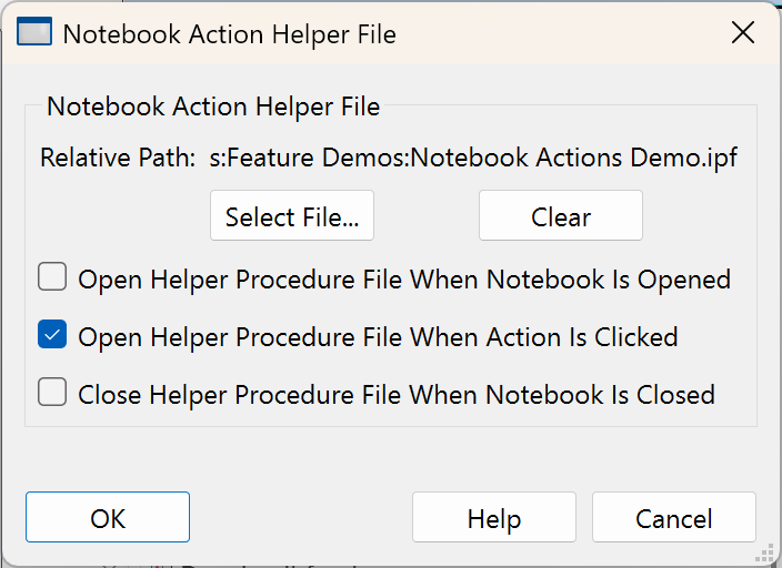 On the other hand, you might want to share a notebook among multiple experiments. For example, you might have one notebook in which you keep a running log of all of your observations. In this case, you could save the experiment with the notebook open. Igor would then save a reference to the shared notebook file in the experiment file. When you later open the experiment, Igor would reopen the notebook file.