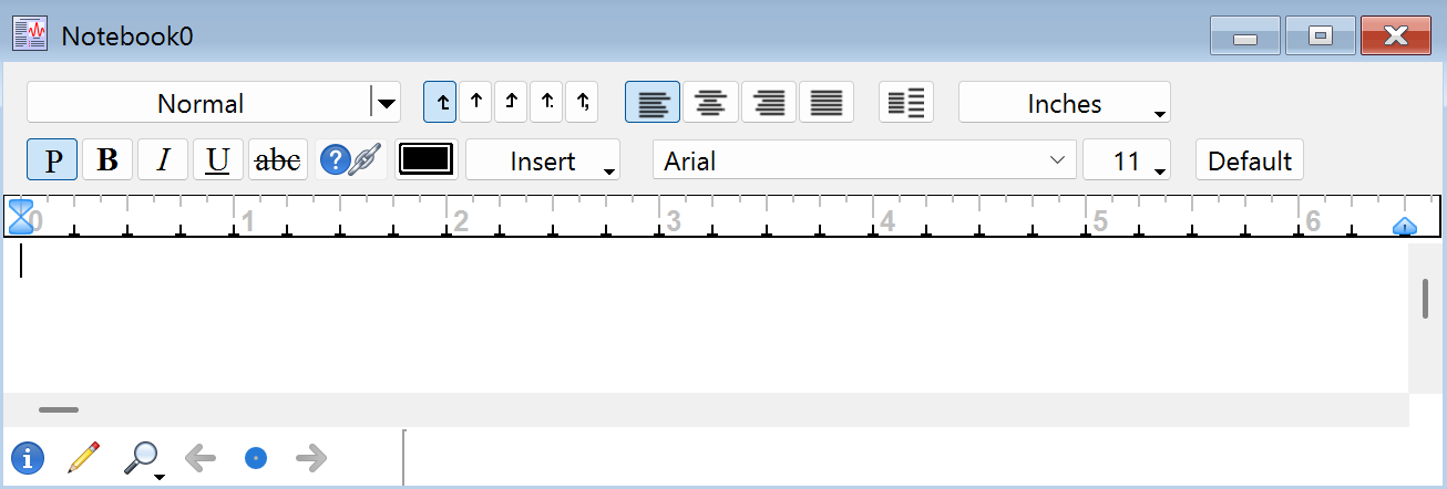 In a formatted notebook, the ruler displays explicit tab stops and default tab stops. You can adjust default tab stops by dragging one of them. This sets either the default tab width in points or in spaces, depending on the units used for default tabs by the current paragraph. Default tabs in points are relative to the position of zero on the ruler. Default tabs in spaces are relative to the ruler's left margin.