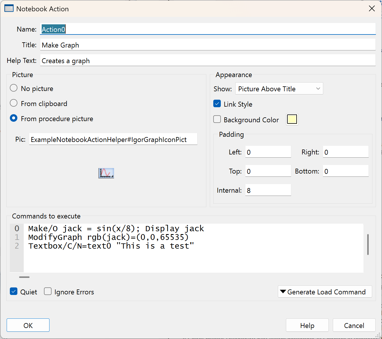 You will need to replace "putGraphicNameHere" with the name of a picture. Use the Pictures dialog, via the Misc menu, to see what named pictures are stored in the current experiment or to add a named picture. See Pictures for more information.