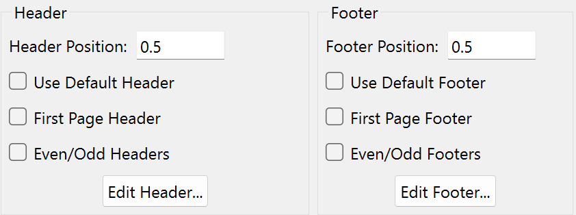 | Document properties | Page margins, background color, default tab stops, headers and footers. |