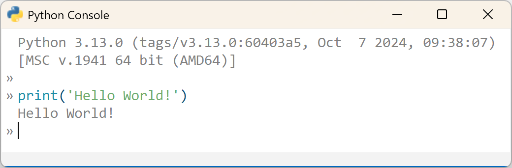 The Python Console runs the Python Interpreter, which allows users to execute Python code one statement at a time. The Python Console is analogous to running a Python session from the system command prompt or terminal.