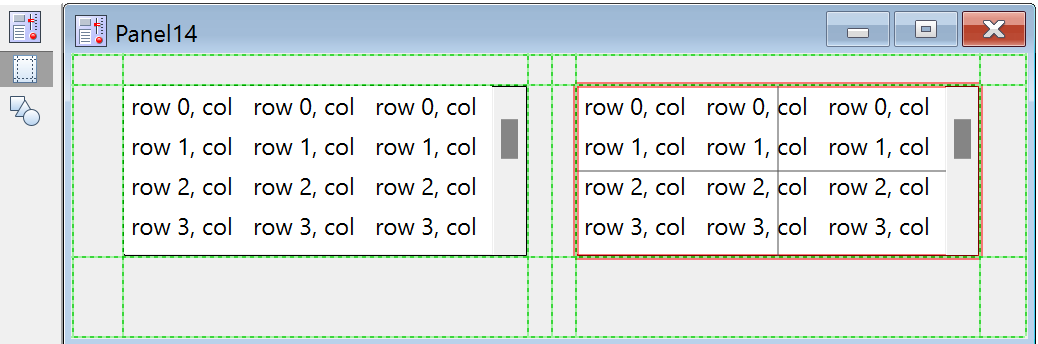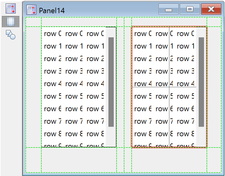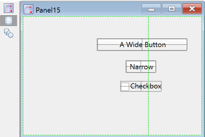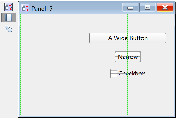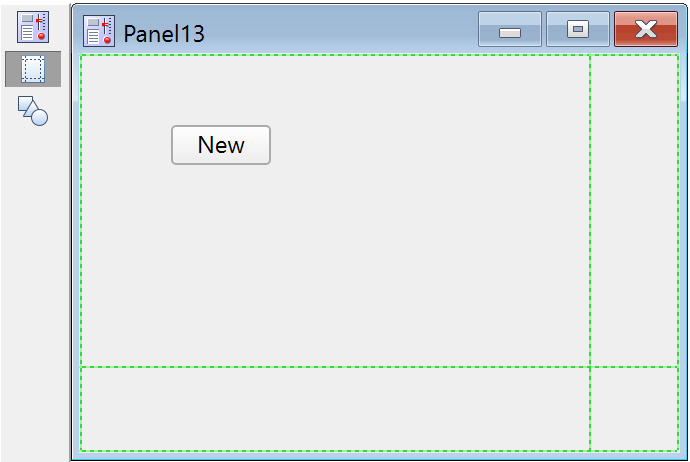 Select the second icon in the tool palette to enter Guides mode. In Guides mode, controls can be anchored to guide lines that help to align and size controls, and to maintain appropriate layout within the owning window. See Laying Out Controls in Guides Mode below. Guides mode for controls is similar to subwindow layout using guides; see Guides Mode for Laying Out Subwindows.