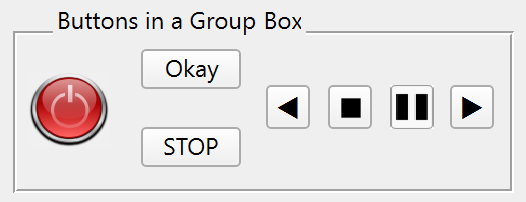 Buttons usually have a rounded appearance, but a programmer can assign a custom picture so that the button can have nearly any appearance: