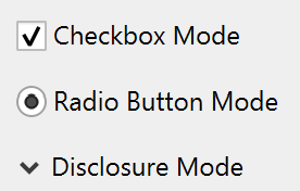 Clicking a checkbox changes its selected state and may run a procedure if the programmer specified one. A checkbox may be connected to a global variable or wave element. Checkboxes can be configured to look and behave like radio buttons or disclosure controls.