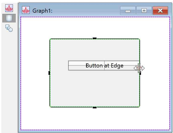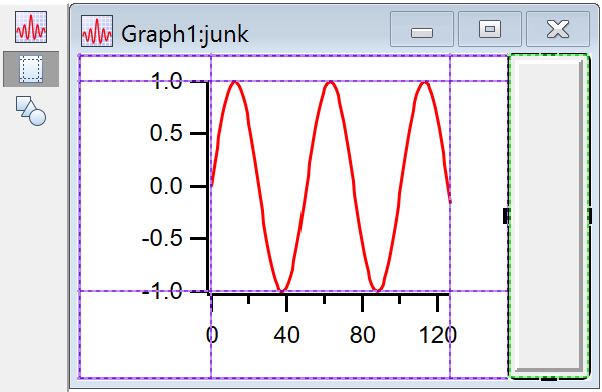 In Guides mode (see Guides Mode for Laying Out Subwindows) adjust the position of the embedded window by clicking the subwindow frame and dragging its handles. The dashed lines represent the edges of the plot and graph areas, and the subwindow frame snaps and attaches to them: