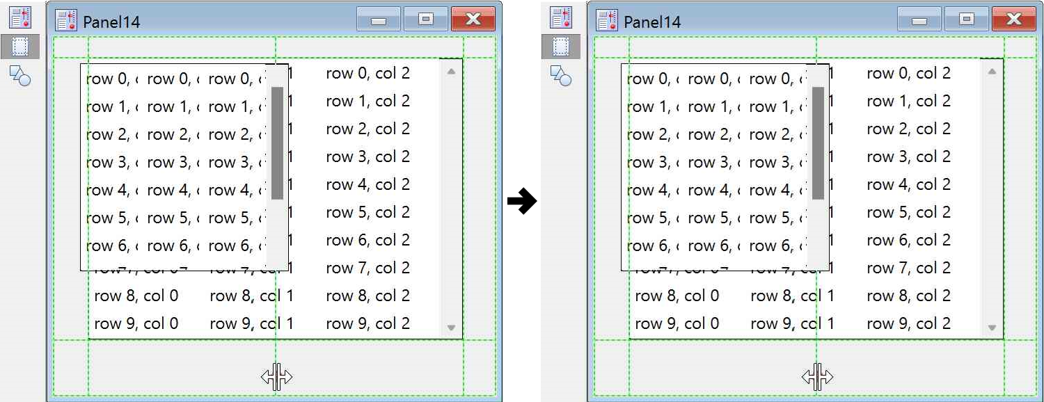 When you change the expansion factor, the size of the panel window and any controls and subwindows in the panel changes accordingly. Additionally, elements drawn in the panel using drawing tools are also expanded.