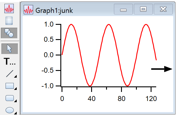 Drawing tools cannot be used in the control bar region of a graph. You can use the drawing tools in the panel subwindow that results from dragging from the edge of a graph (see Controls in Graphs), in a panel with a graph subwindow, or in a regular panel subwindow with a graph as its parent.