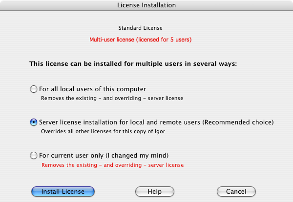 For all choices, it is the responsibility of those using Igor to limit the concurrent users of Igor to the number specified by the Igor license.