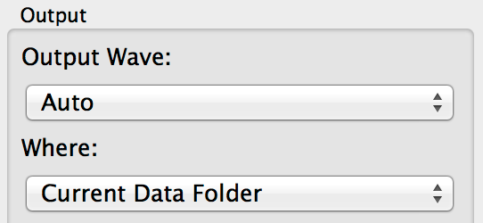 The Output Wave menu offers choices of a wave to receive the result of the operation: