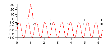This picture shows the result of an FFT operation when Src and Output, Stacked Axes is chosen: