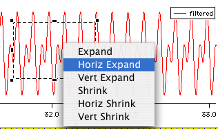 In most cases the source wave will be plotted on the left and bottom axes. You will usually want to select the right axis because of the differing magnitude of data values that result from most operations. You may also want to select the top axis if the operation (like the FFT) changes the X range as well.